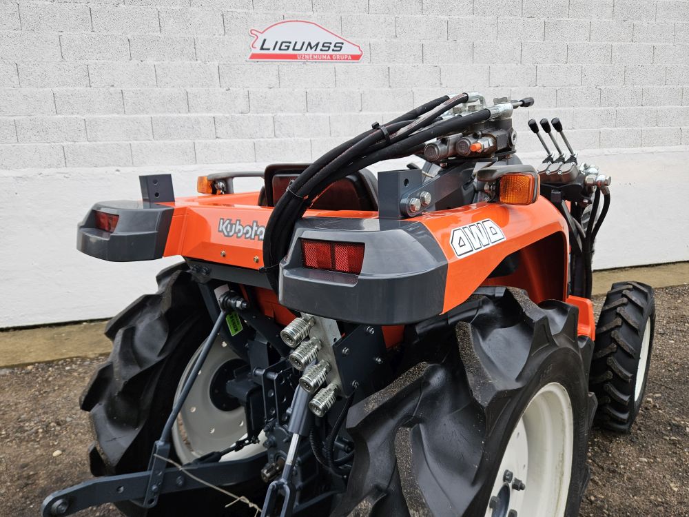 Japāņu traktors Kubota ar 23 Zs / 16.9 Kw dīzeļdzinējs 3 cilindru ar šķidro dzesēšanu.